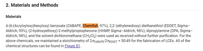 加州大學(xué)圣地亞哥分校團(tuán)隊(duì)開(kāi)發(fā)新型工藝,通過(guò)鏈纏結(jié)增強(qiáng)液晶彈性體性能,Chemfish 高純度單體成關(guān)鍵支撐。